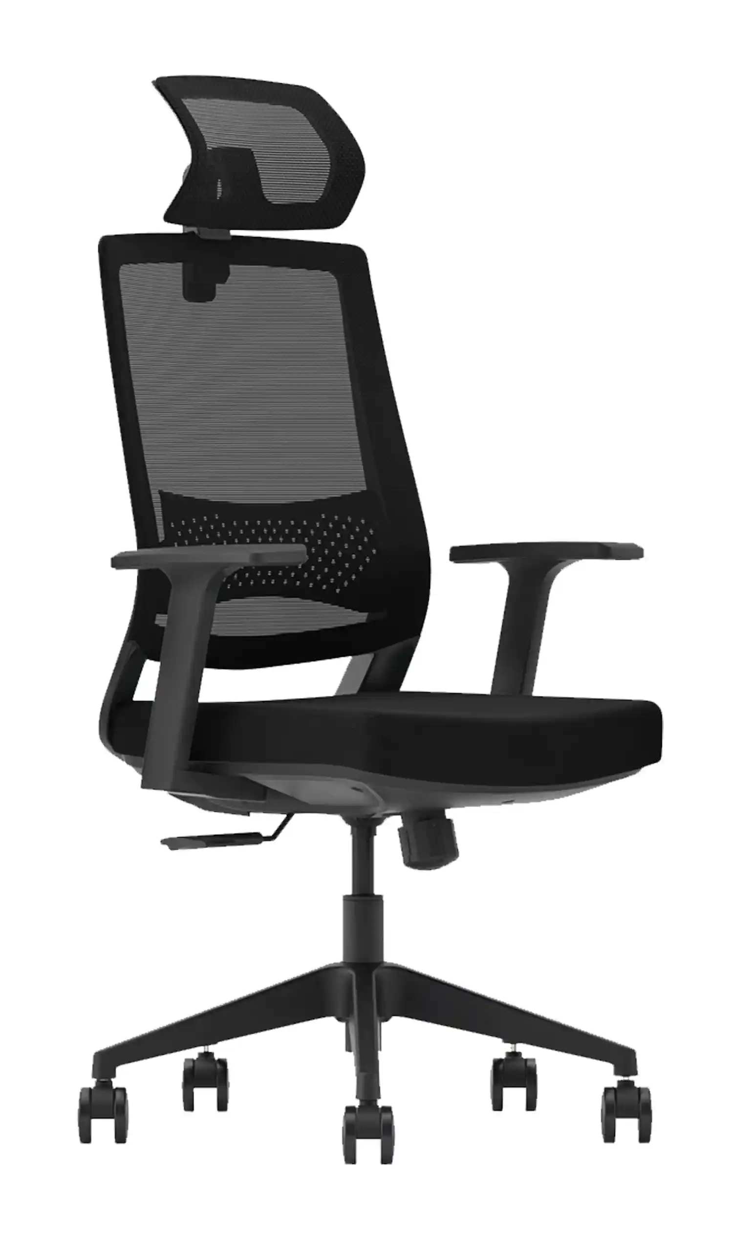 Respaldo mesh en color negro. Asiento con esponja inyectada en tela color negro. Brazos fijos en forma T. Giratoria con base de 5 rodos. Ajustable en altura por medio de shock. Apoya cabezas, soporte lumbrar. Garantía de 3 años. PESO DE SOPORTE RECOMENDADO: 200 LIBRAS